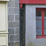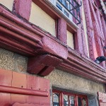 Derrière l'enseigne se trouve un linteau...